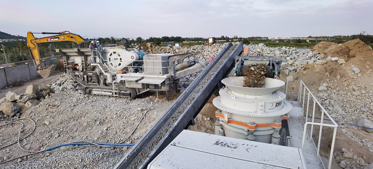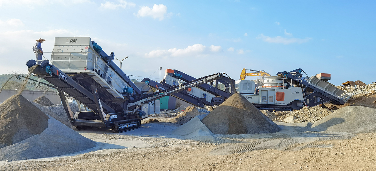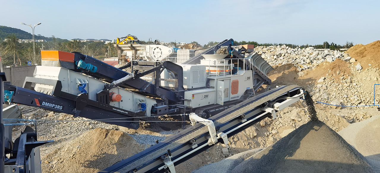 設(shè)備型號(hào):DMJ移動(dòng)顎式破碎站+DMHP移動(dòng)圓錐式破碎站+DMS移動(dòng)篩分站